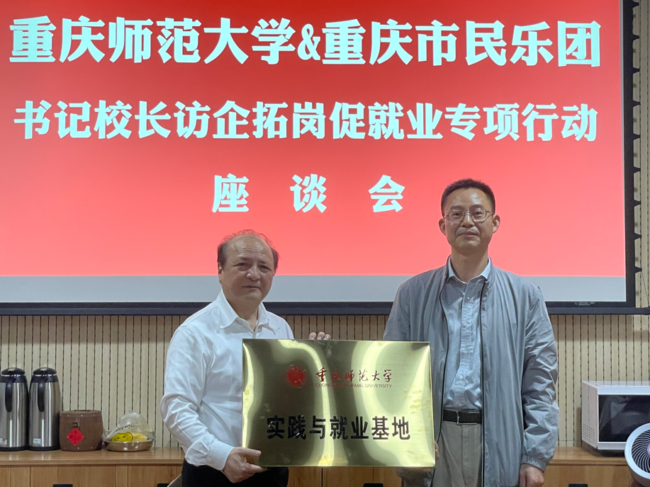 座谈会上,董景荣副校长代表我校与重庆市民族乐团进行了“重庆师范大学实践与就业基地”的揭牌仪式。