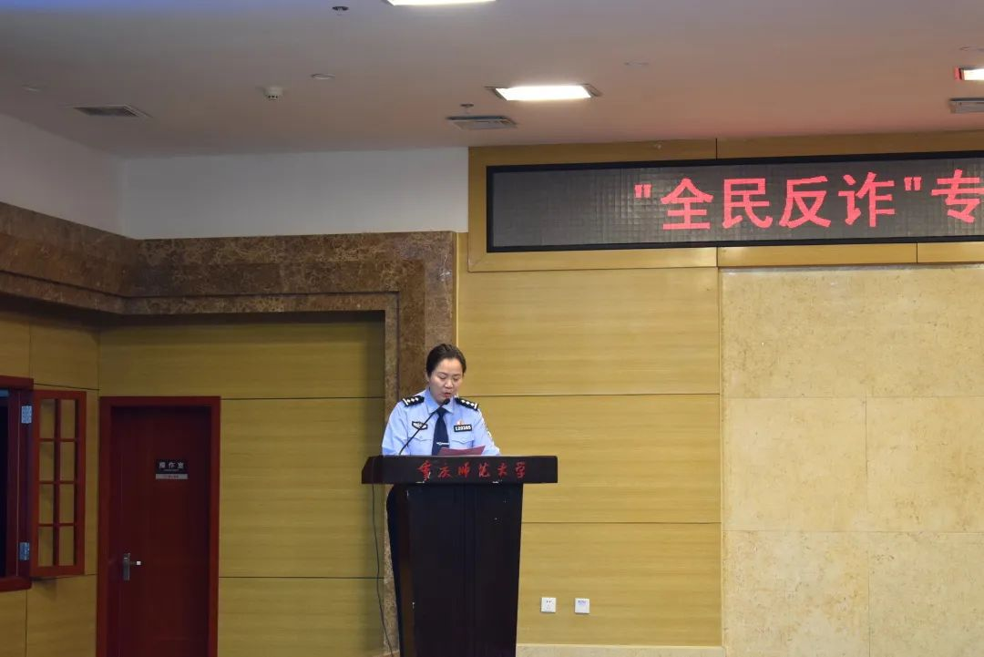 随后,治安支队副支队队长、女警突击队队员苏兰通过真实案例、以案说法,让大家更加深刻地认识到了电信诈骗的的危害性之强,表示要全面提示大学生整体防骗“免疫力”。我校保卫处副处长李鑫也介绍了我校在防诈反诈方面已做出的工作,将会不断完善学校防诈安全体系,切实保障学生电信网络安全。