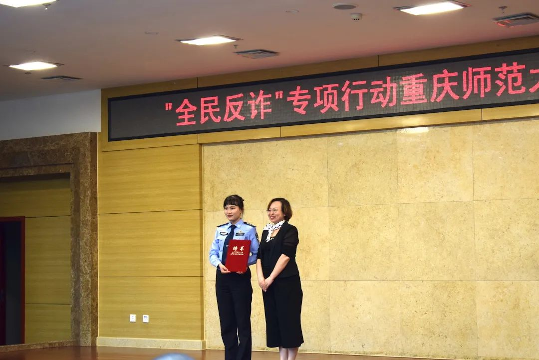 活动伊始,我院鲁福崇老师介绍了到场领导及嘉宾并阐述了防诈反诈的重要性,学院党委书记曾凡浏向“校外反诈宣传员”颁发聘书。