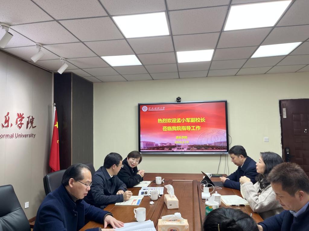 2月19日下午,我校副校长孟小军深入音乐学院开展调研工作,党委书记曾凡浏主持会议,我院副院长郑华、副院长吴伟、党委副书记兼纪委书记宋雪飞、院长助理颜聪出席此次指导工作会议。