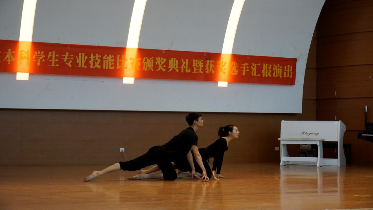 颁奖典礼后的汇报演出更是精彩纷呈。由袁梅同学带来的《致克罗埃》使演出拉开了帷幕;余鑫霖同学的《山海》铿锵有力,赢得台下掌声一片;龚杰颖同学演唱的《幽兰操》是传统古诗词与现代艺术歌曲的完美结合,其高音平稳悠扬,幽香尤浓;陈培灵同学带来的《皮黄》钢琴曲,曲子运用了京剧中的板式结构,蕴含了东方京剧特色与西方钢琴的融合之美;还有陈佳同学的电子管手风琴独奏《加勒比海盗组曲》气势磅礴;阮睿涵同学的《小提琴协奏曲第一章》婉转悠扬,让台下观众都目不转睛;更有汪士靖同学的独舞《如意娘》,眉目传神,身段优美;张馨文、肖涵议同学的双人舞《遥远的图腾》将蒙古舞的舞蹈舞蹈特性展现的淋漓尽致,震撼人心.