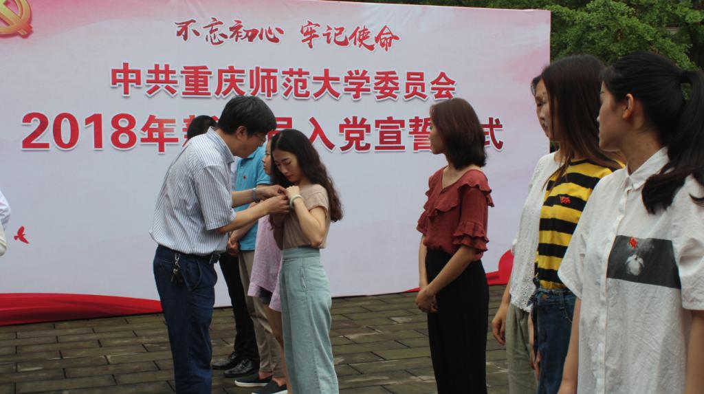 为深入学习贯彻习近平新时代中国特色社会主义思想和党的十九大精神,大力宣传党的光辉历程和丰功伟绩,进一步提升党组织的号召力、凝聚力和战斗力,引导新党员感受党的神圣,坚定理想信念和为共产主义奋斗终身的决心,激励新入党党员以实际行动积极践行入党誓词,争做表率。2018年6月22日中午,音乐学院党委在学校党员承诺墙举办“老党员重温誓词新党员入党宣誓”活动新党员入党宣誓仪式在宣誓墙举行,老党员在宣誓墙下重温誓词。该活动由音乐学院党委书记鲁福崇、团委书记程小诗主持,23名新老学生党员参加。