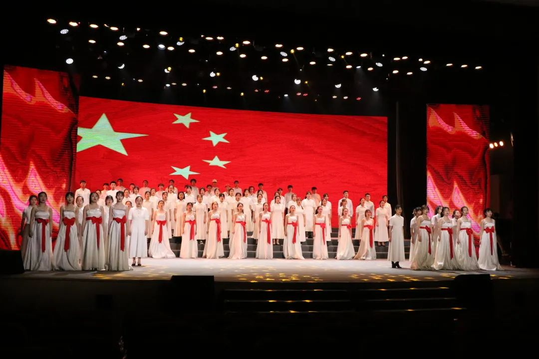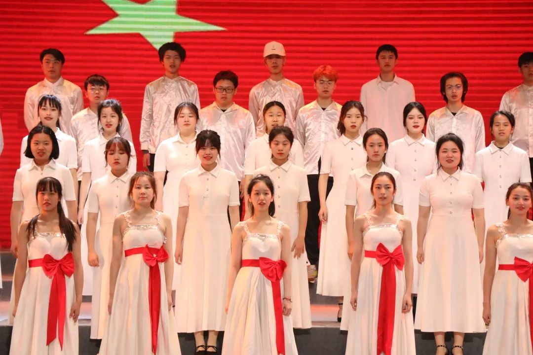 4月12日,校友会堂演出厅的舞台上,聚光灯亮起,2020级音乐学一班的同学们终于开始了他们的表演。“我是国旗上的一颗星,肩并肩手挽手,紧紧围绕人民,擎起太阳走向复兴...”同学们用最真挚的情绪演绎着激昂振奋的旋律,强劲有力的歌词打动了在座的观众们。