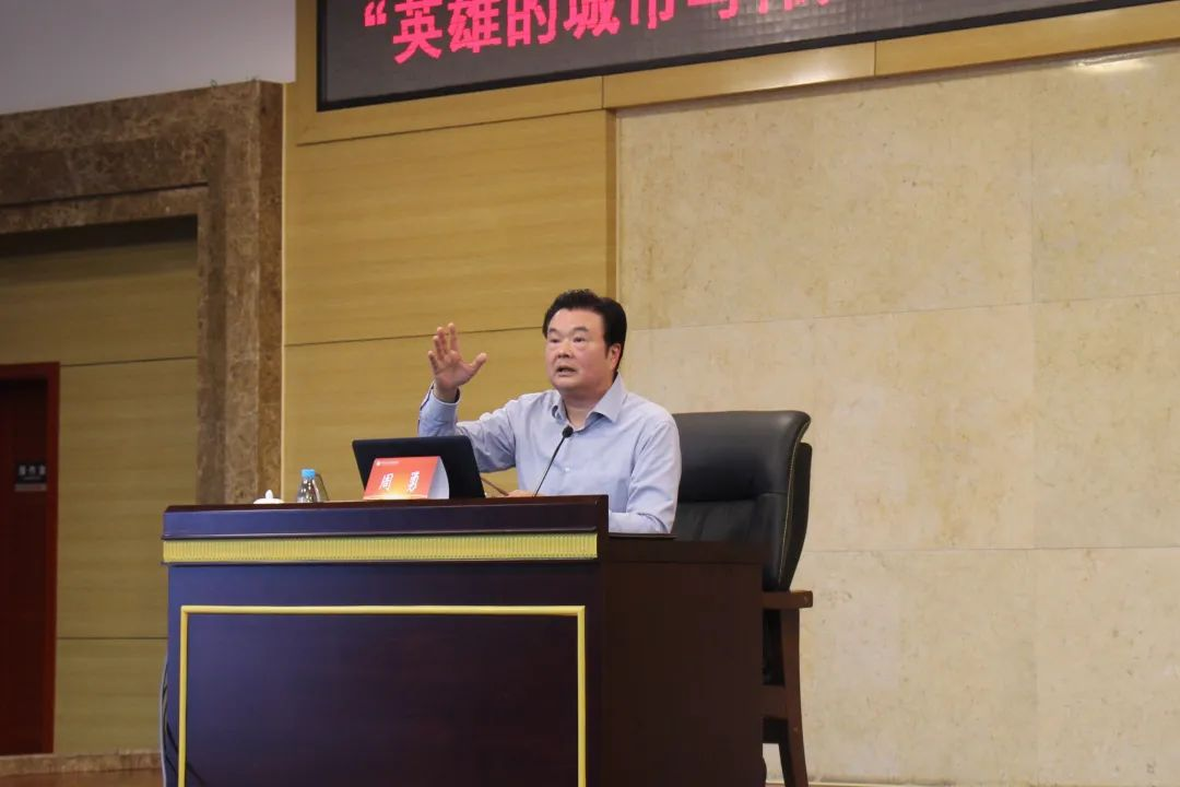 在提到重庆的抗战精神方面时,周教授从多角度分析了“红岩精神”的科学命题及其本质和特色,并详细讲解了正确把握“红岩精神”与《红岩》小说二者关系的方法。周教授指出,重庆奉献了伟大的抗战精神与红岩精神,成为中华民族和中国共产党宝贵的精神财富。