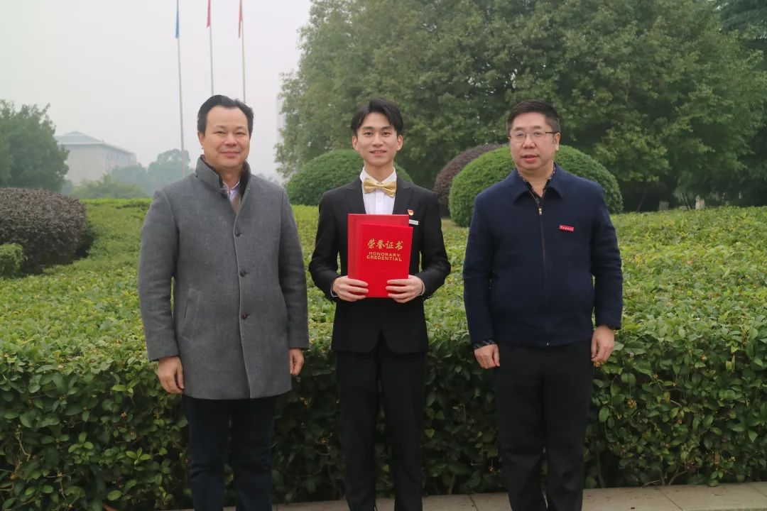 (龚浩宇与校党委书记曾礼,校党委副书记、校长孟东方合影留念)